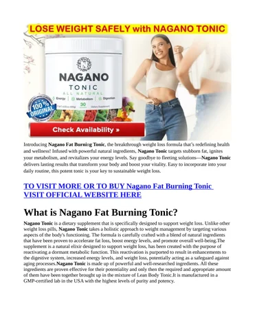 1. What is Nagano Fat Burning Tonic and how does it work?